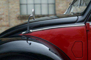 However, already in 1947 the decision is made to export the Beetle. This leads to a split of production into 'Standard' and 'Export' models, that would last for three decades. The 'Export' models (Type 11A) could be recognised by additional chrome parts (for instance bumpers and wheel adornments) and a more comprehensive standard equipment, including adjustable seats. Since it was deemed too expensive to develop and produce a curved rear window, the engineers decided to use a split window. This will later make these early cars known as 'Brezel-Käfer' (Pretzel Beetle in German). Characteristic of the early years is the matte paint. The paint quality did not allow for a gloss finish. The Beetle is powered by a 25 hp 1131 cm³ air-cooled 4-cylinder boxer engine and is rear-wheel drive, which gives the car excellent traction.
